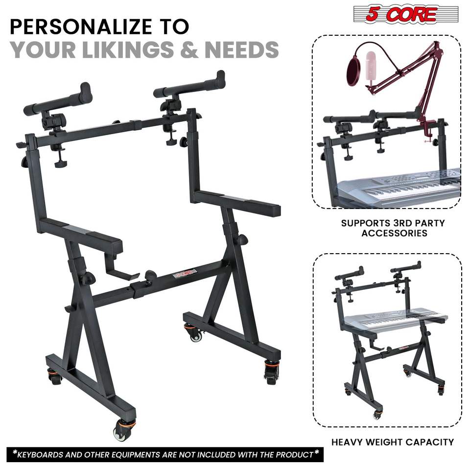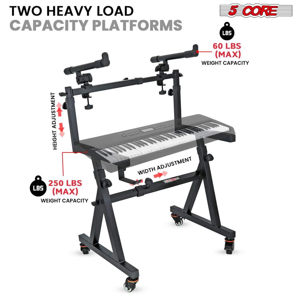 Soporte de Piano Eléctrico de 2 Niveles, Estilo Z, Ajustable, Plegable, Resistente, con Correa de Seguridad para Instrumentos de 54 y 88 Teclas