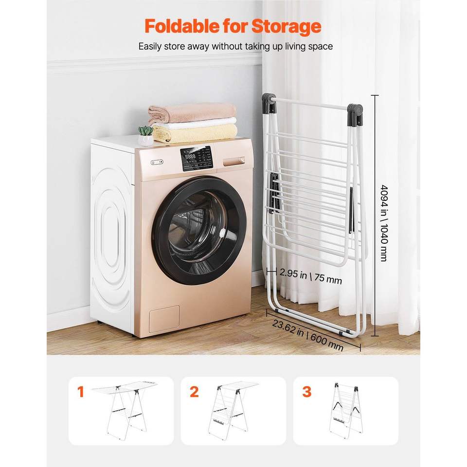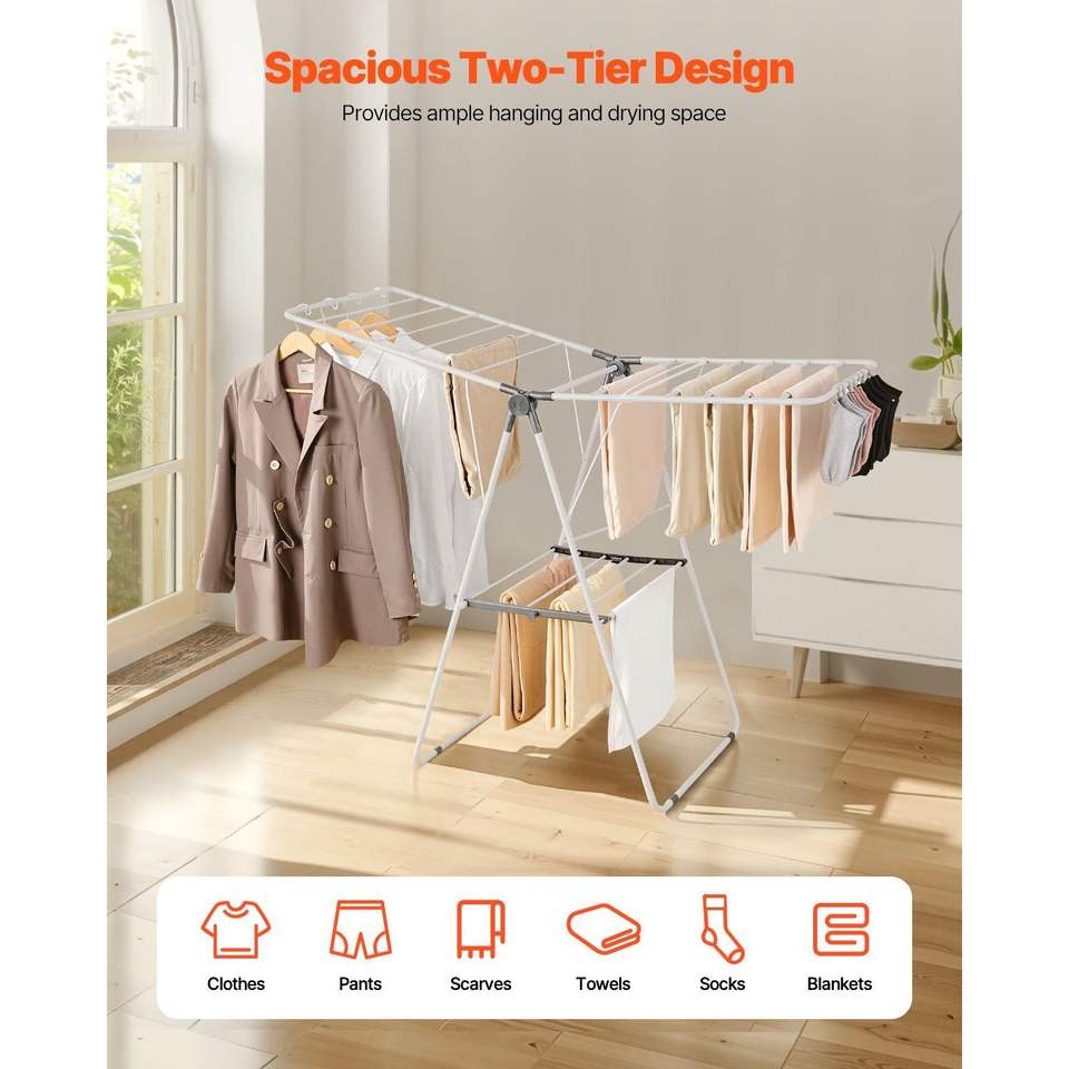 Tendedero de Ropa Metálico Plegable de 2 Niveles con 21 Varillas de Secado y Pinzas para Calcetines, Altura Ajustable