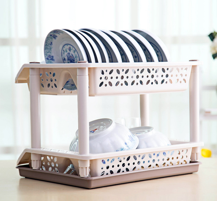 Descripción:2 Tier cocina plato de plástico tendedero bandeja cubiertos plato escurridor