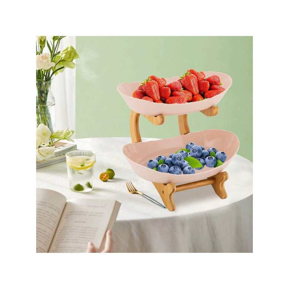 Bandeja multifuncional para servir frutas de 2 niveles Cuenco para aperitivos de diseño abierto de 2 capas con material de PP para exhibición de frutas de mesa