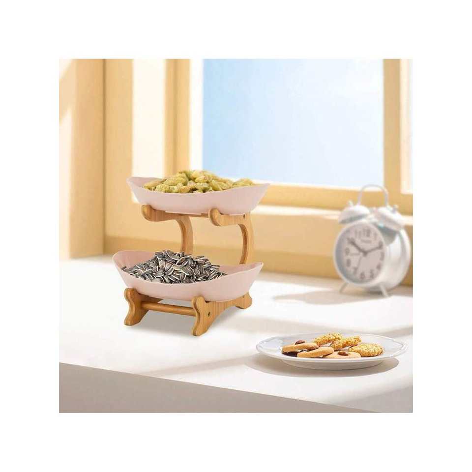 Bandeja multifuncional para servir frutas de 2 niveles, cuenco de 2 capas de diseño abierto para aperitivos, soporte para cesta de frutas de mesa de Material PP