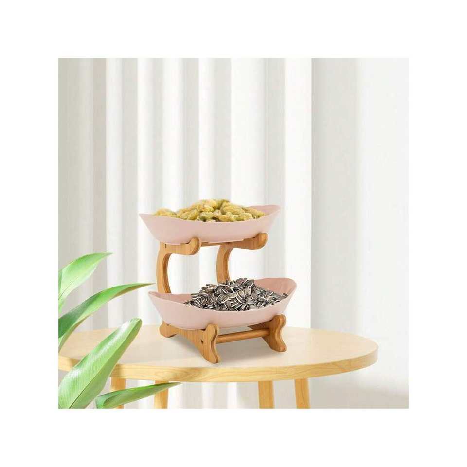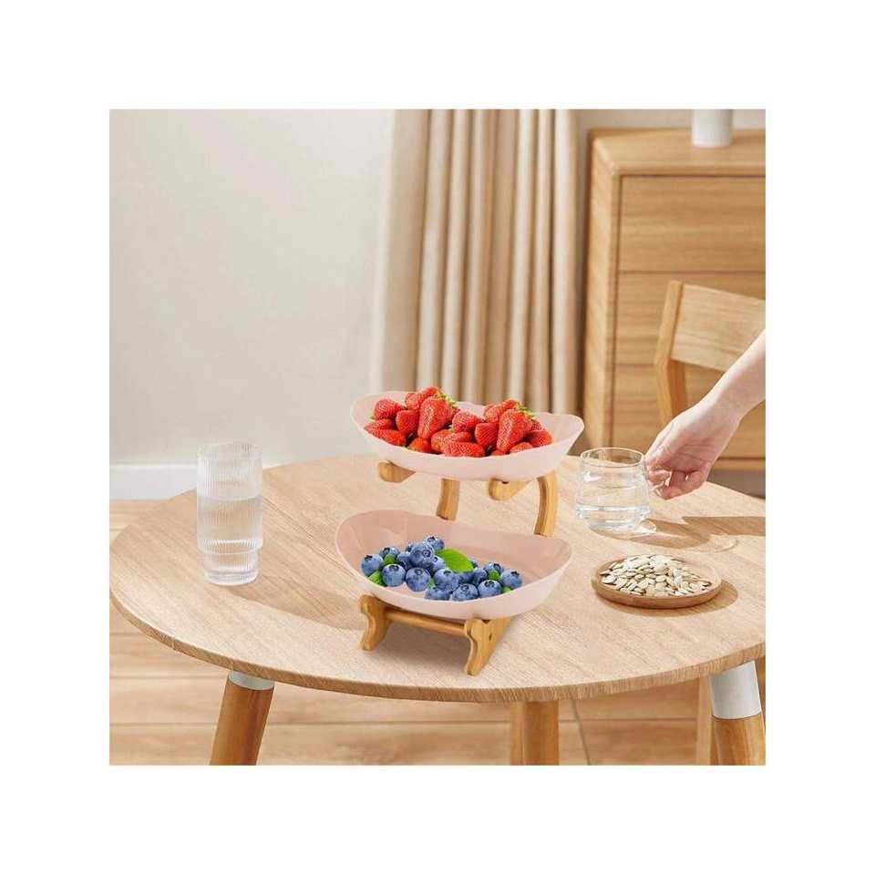Bandeja multifuncional para servir frutas de 2 niveles, cuenco de 2 capas de diseño abierto para aperitivos, soporte para cesta de frutas de mesa de Material PP
