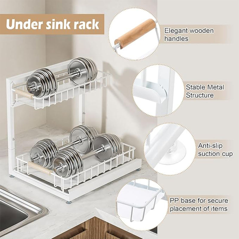 De metal de 2 niveles debajo del fregadero sacar organizador