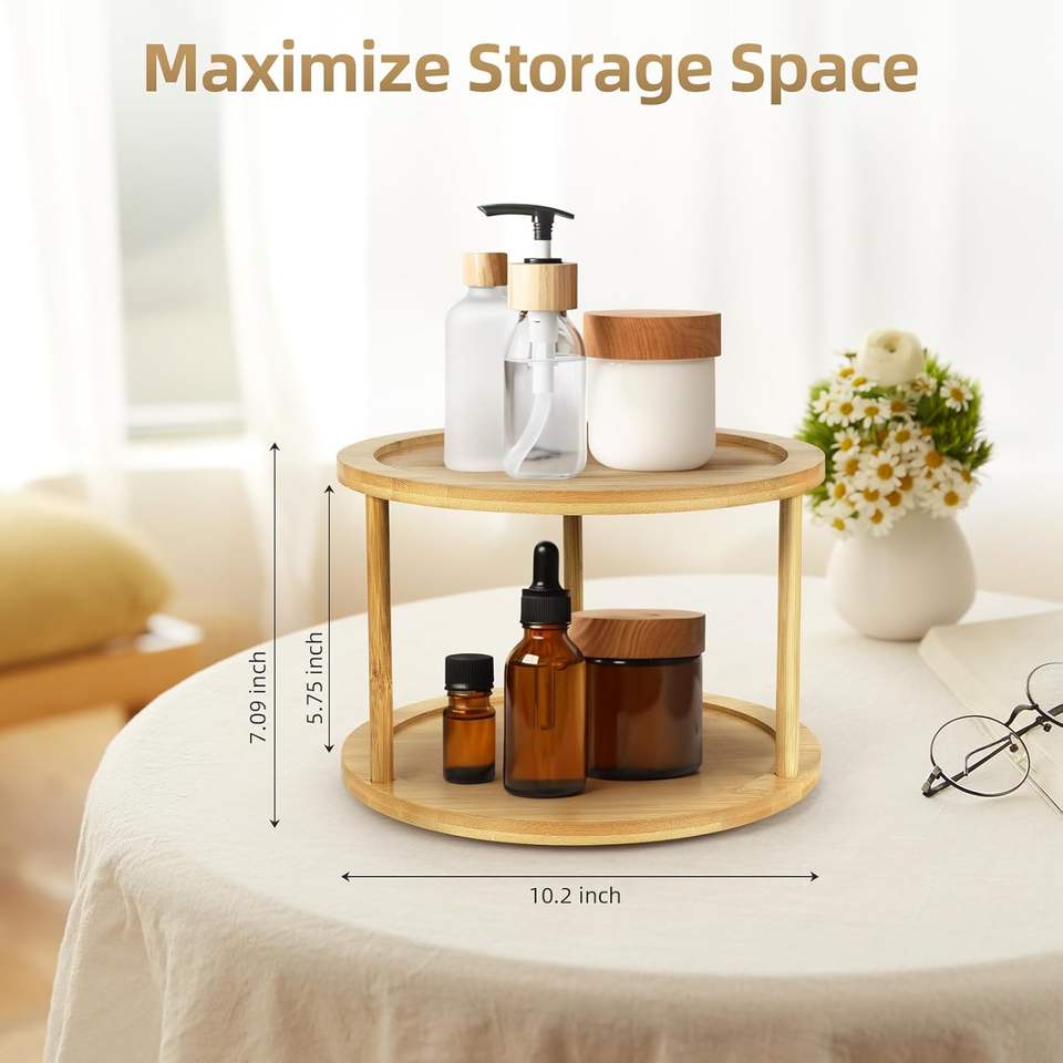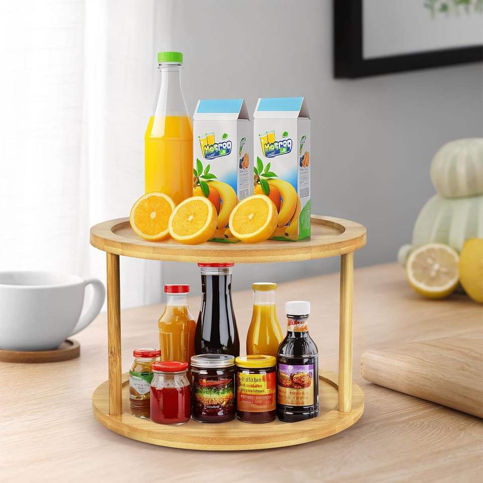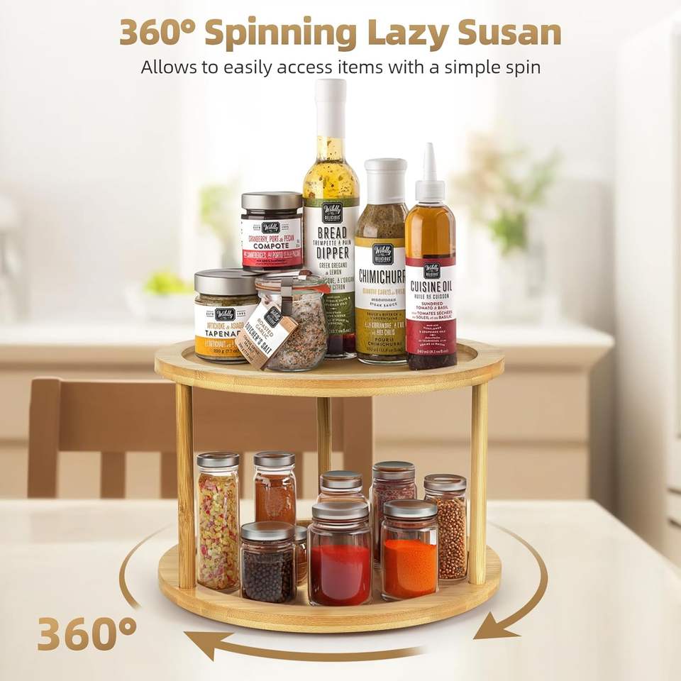 Estante Giratorio de Bambú de 2 Niveles para Especias, Tipo Vertical, Organizador Moderno de Almacenamiento para Cocina, para Especias, Condimentos y Artículos de Despensa, Uso Alimentario