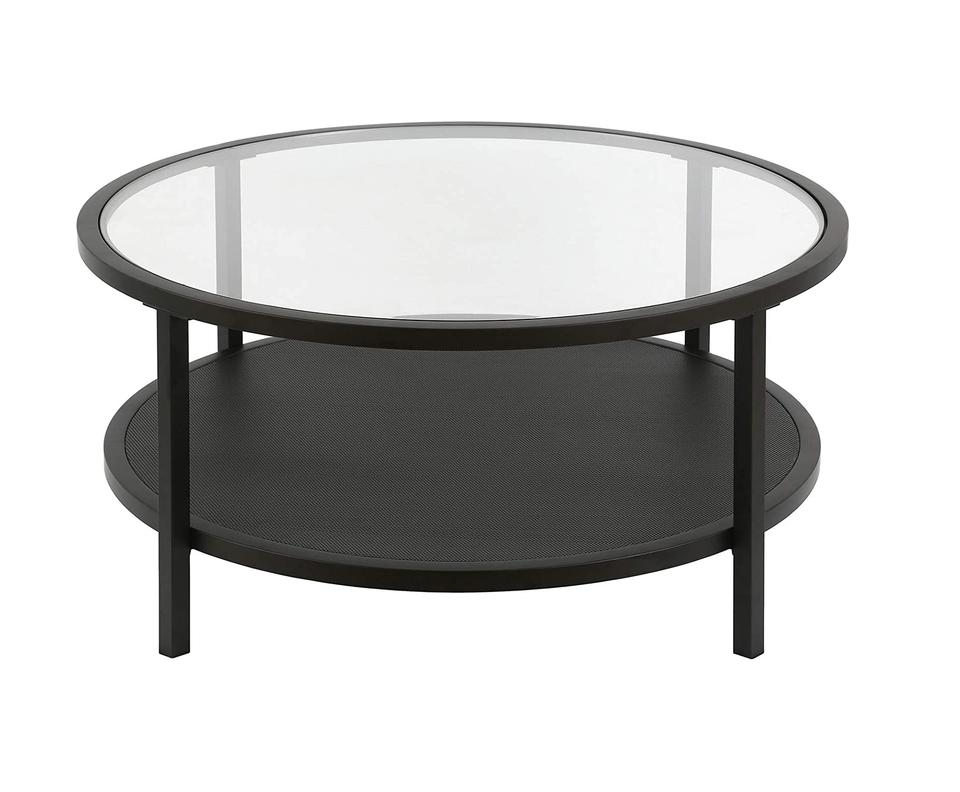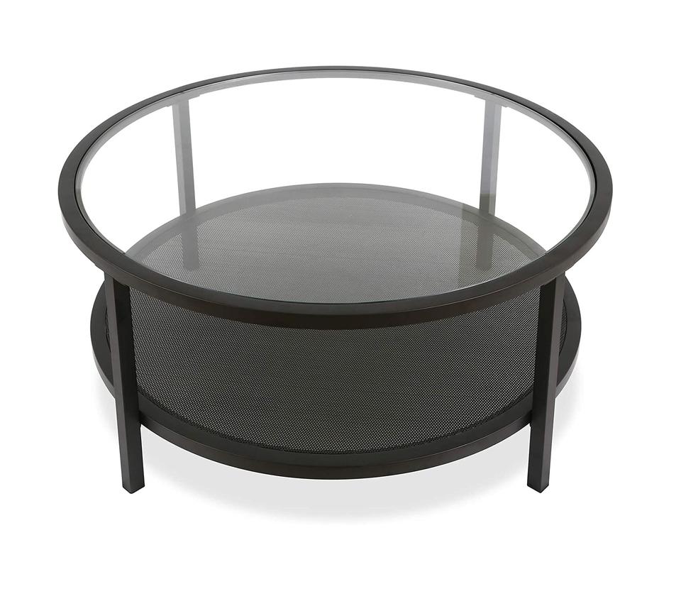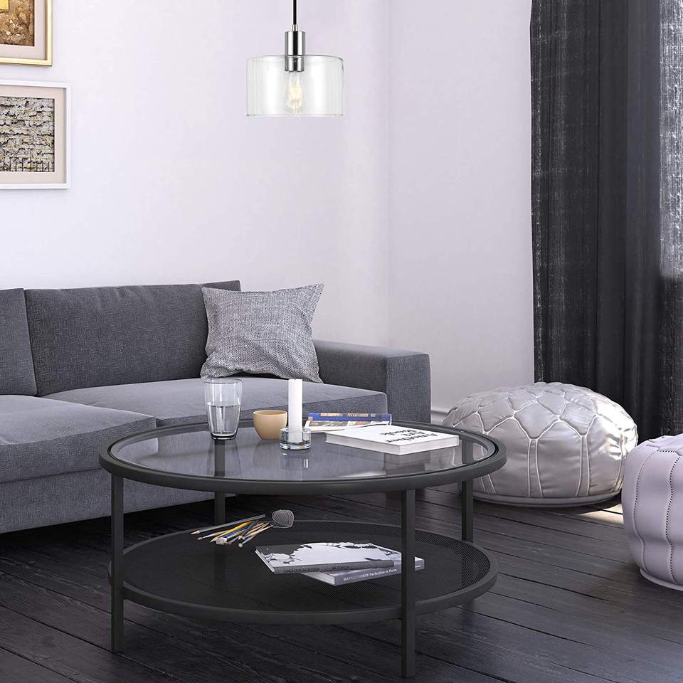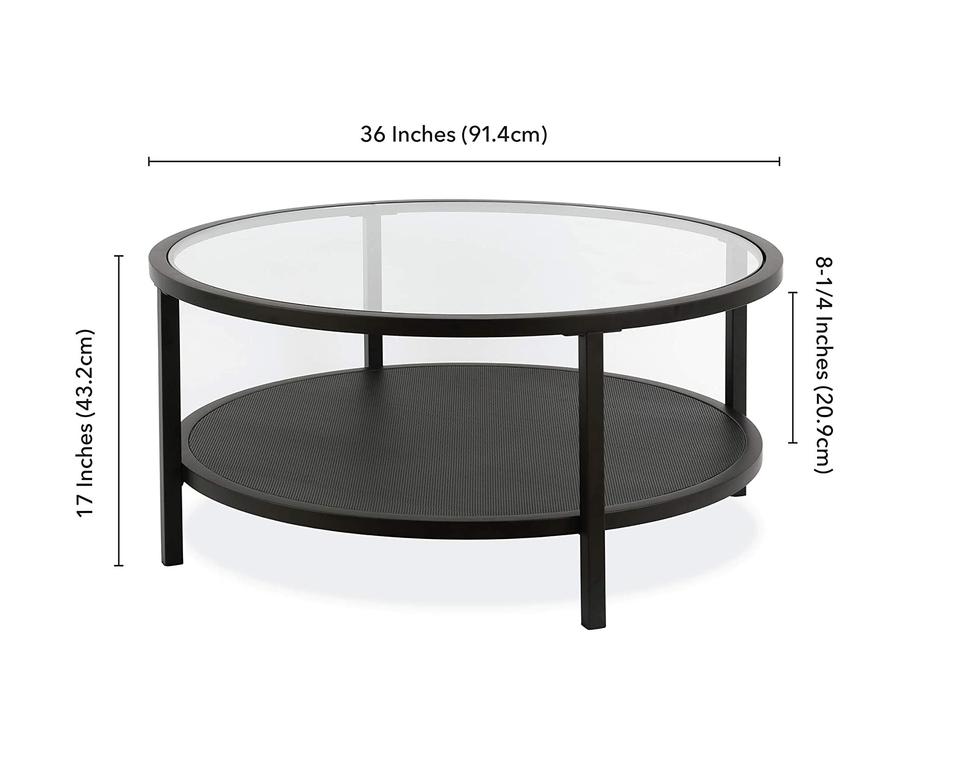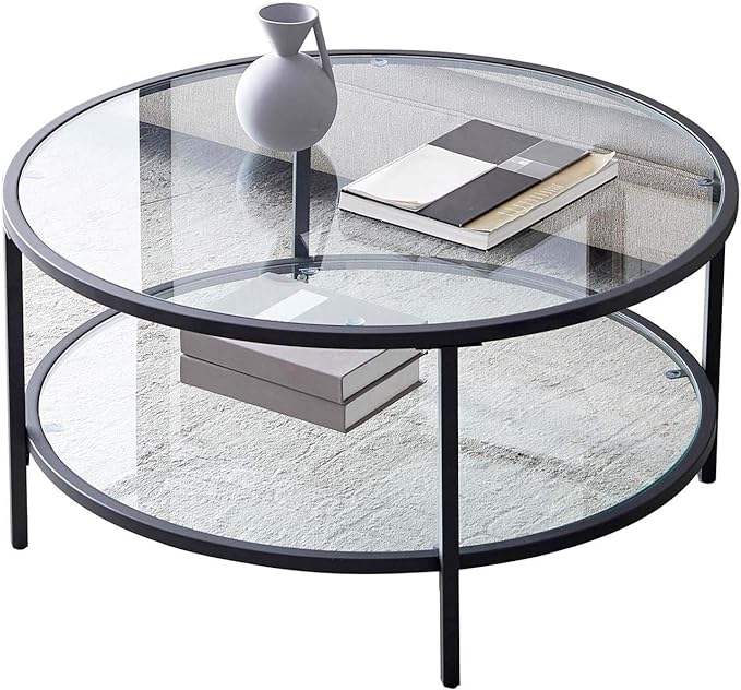 Mesa de centro redonda de 2 niveles, tapa y Marco de vidrio templado, centro moderno con recubrimiento de polvo negro/mesa de centro, mesa elegante versátil