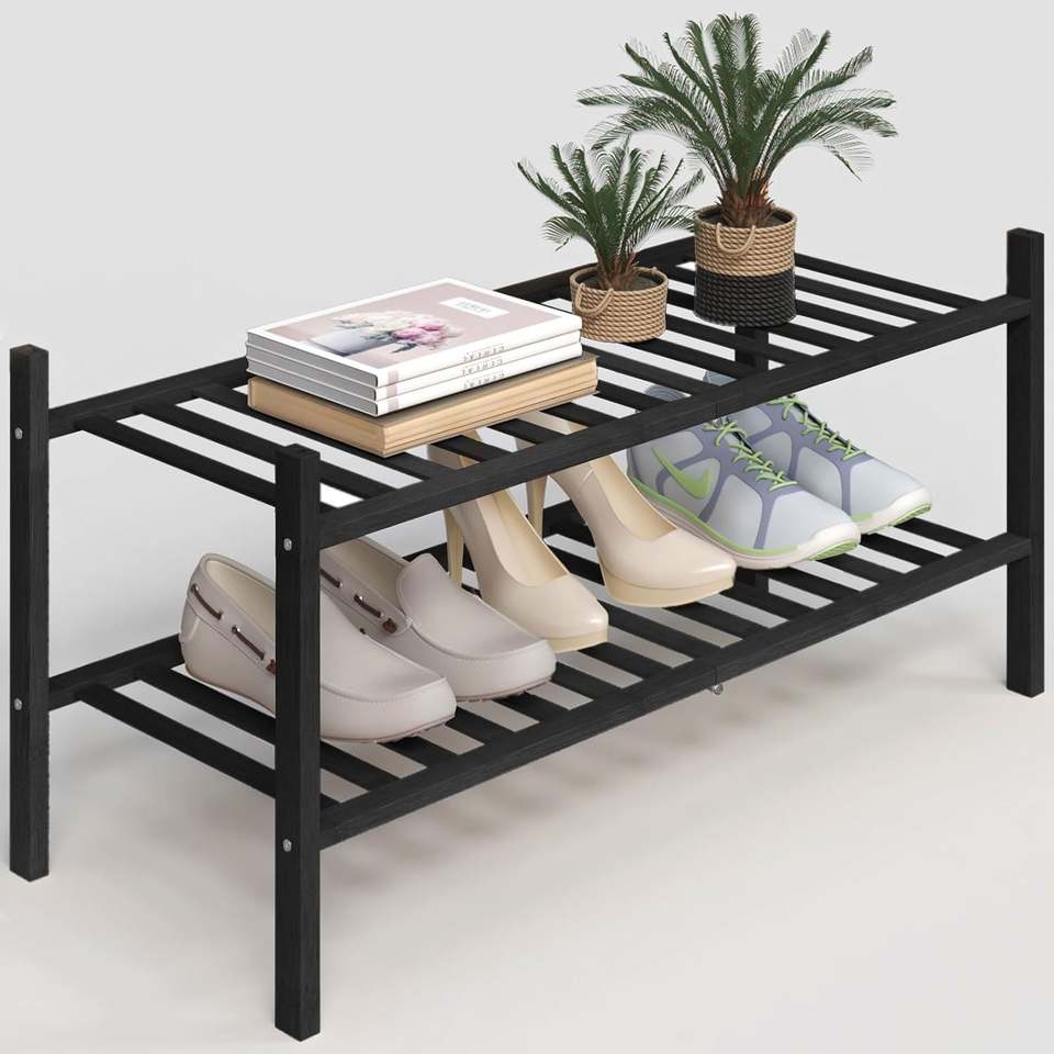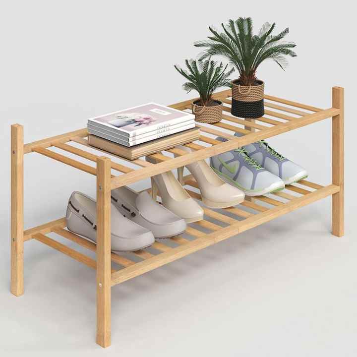 Zapatero de 2 Niveles de Bambú para Entrada, Pasillo o Baño