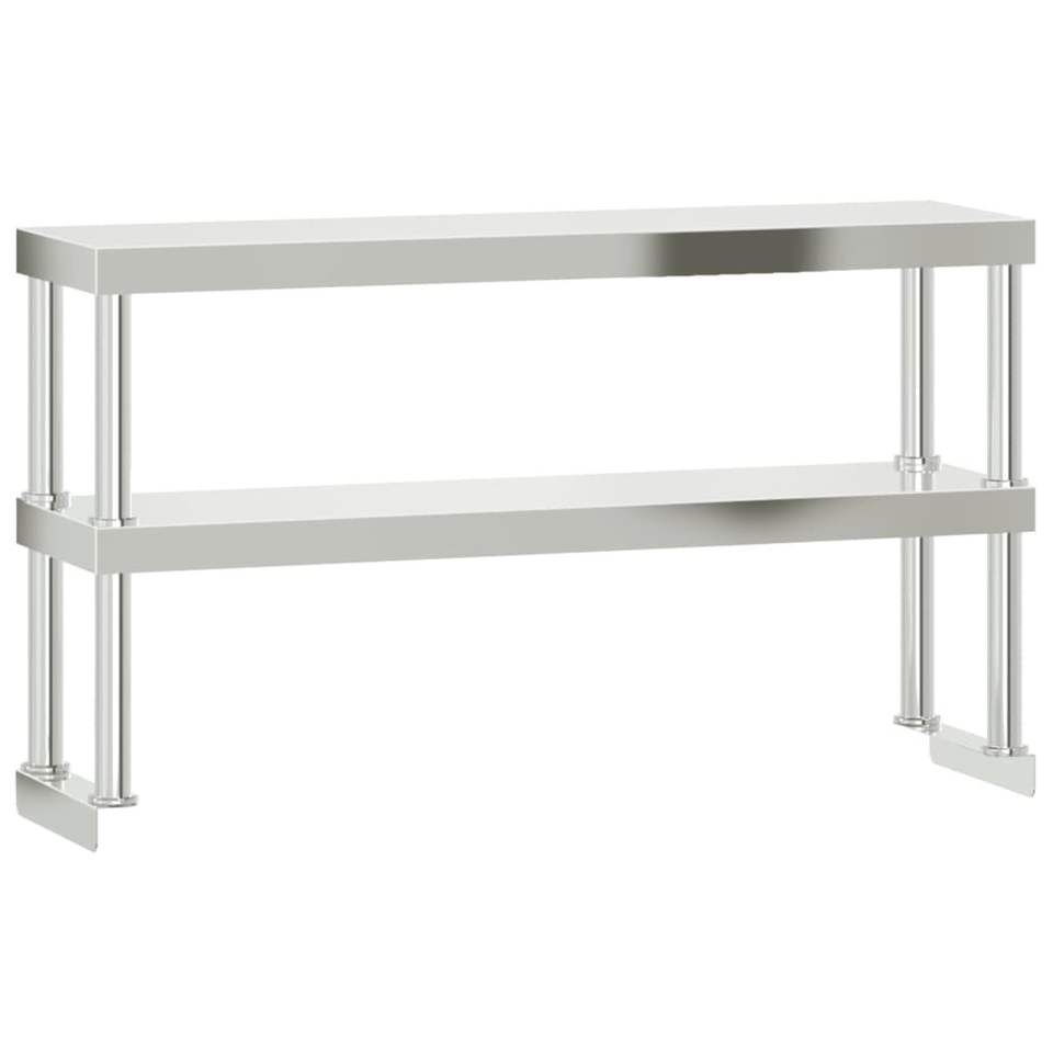Mesa de Trabajo de Acero Inoxidable de 2 Niveles con Estante Superior de 43.3''x11.8''x25.6'' para Almacenamiento en la Cocina