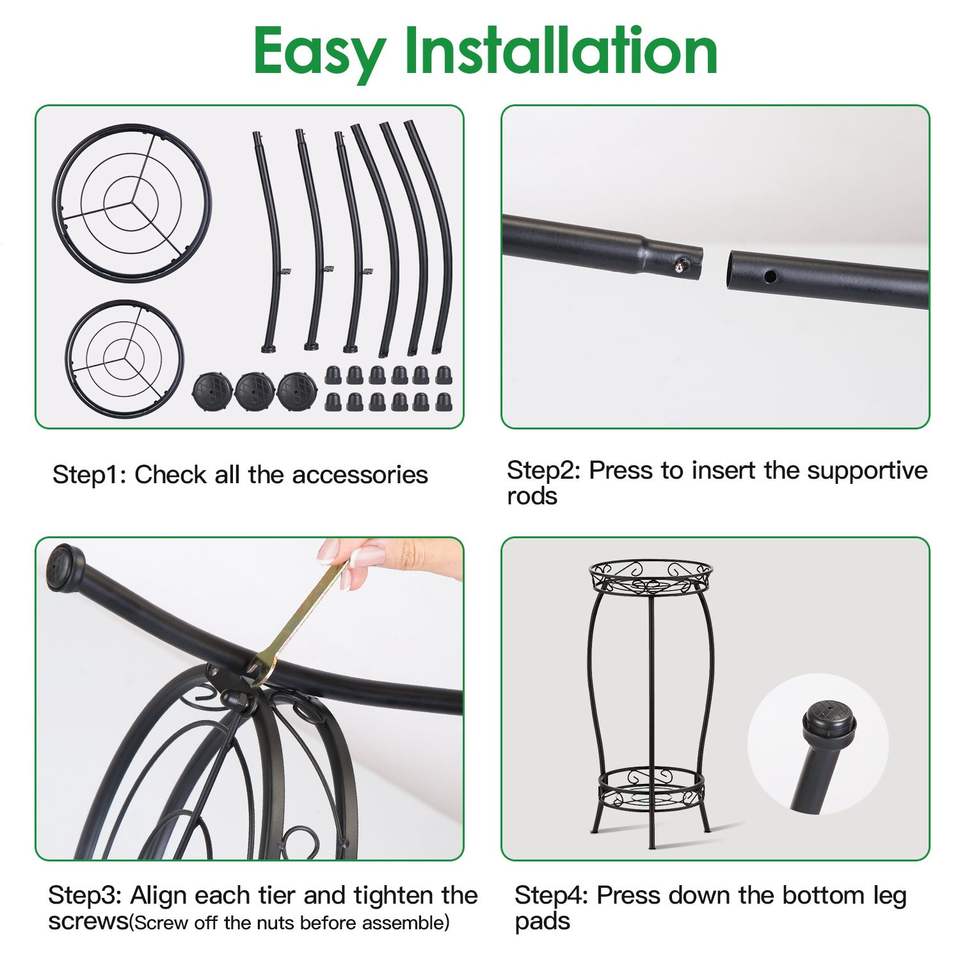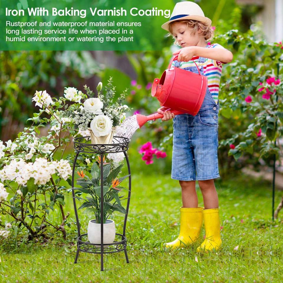 Soporte de Hierro de 2 Niveles para Plantas, Resistente a la Oxidación, 26.57 Pulgadas de Altura, para Interiores y Exteriores, Soporte para Macetas, Nuevo Diseño Elegante