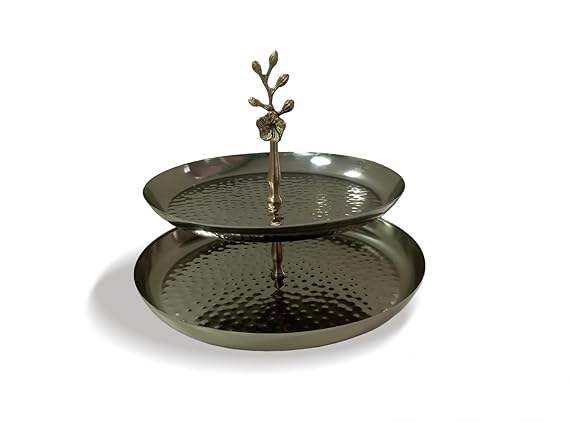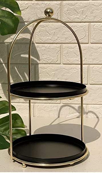 Soporte para pasteles de forma redonda de 2 niveles, bandeja de servicio de metal, soporte para pasteles de boda y cumpleaños, dorado