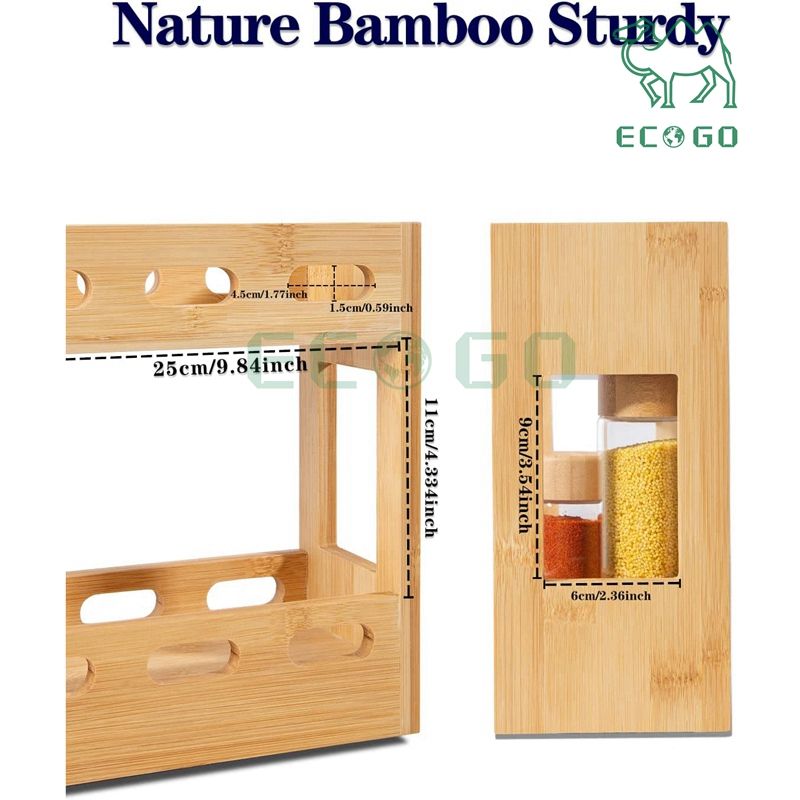 Organizador de estante de especias extraíble de 2 niveles, juego de estantes de especias de bambú, organizador de almacenamiento multiusos