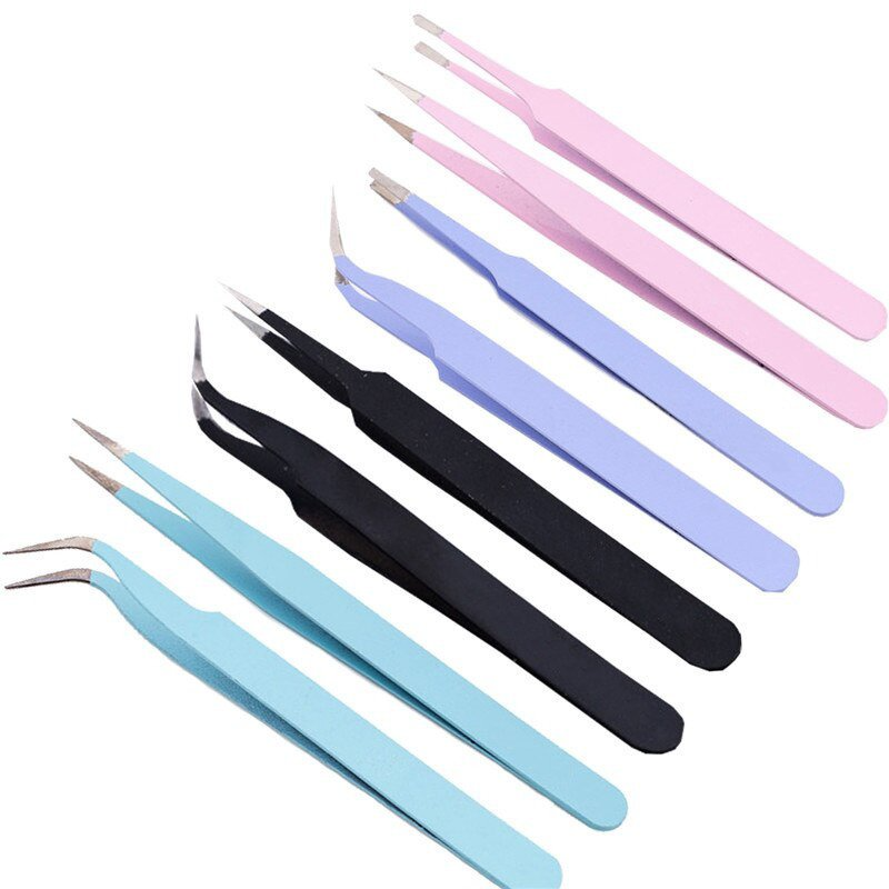 Kit profesional de 2 tonos de colores, pinzas de extensión de pestañas con volumen Antiestático de acero inoxidable, logotipo personalizado para pegamento