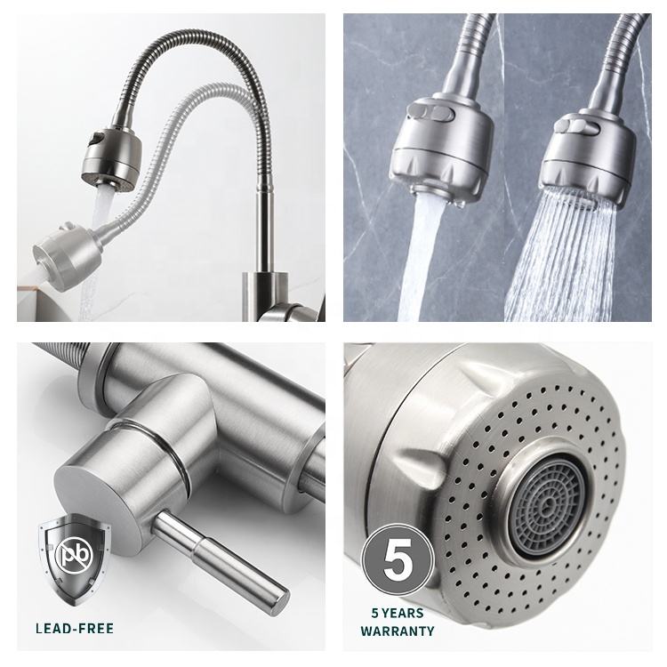 Grifo de Cocina de Acero Inoxidable Montado en Cubierta, Giratorio en 2 Direcciones, Flexible, para Ducha
