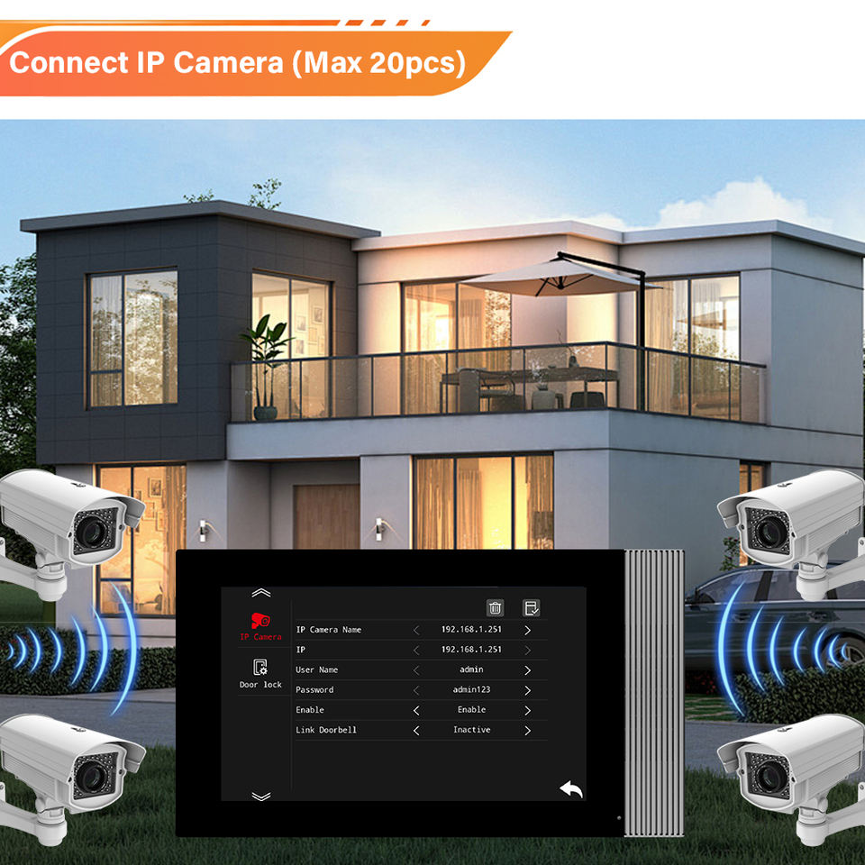 Intercomunicador de 2 Cables, Solución Integral, Monitor IPS de 7 Pulgadas, 1024*600 HD, IP65 Resistente a la Intemperie, Solo Panel de Llamada