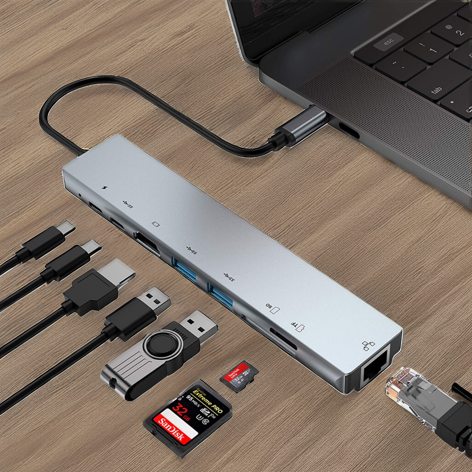 Adaptador Multipuerto USB Tipo C 2 en 1 con 7-8 Puertos, Divisor USB 3.0 y 2.0 para MacBook Air, para Dell, Base de Conexión de Aluminio Metálico