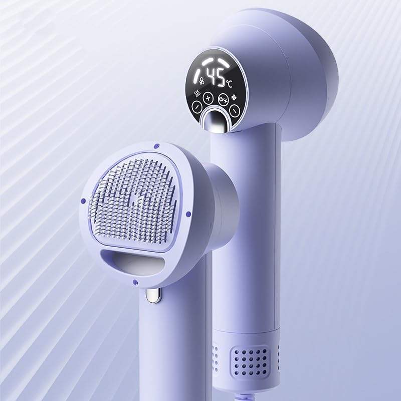 Peine de plástico ABS 2 en 1 para el cuidado de mascotas, características de limpieza de secado de aire caliente integradas, cepillo de estilo pequeño para perros, gatos, energía cargada