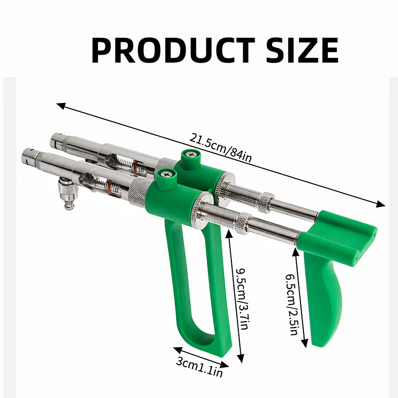 Vacunador Continuo Ajustable 2 en 1 para Pollos y Aves de Corral Equipo Inyector de 2 Vacunas Jeringa Veterinaria
