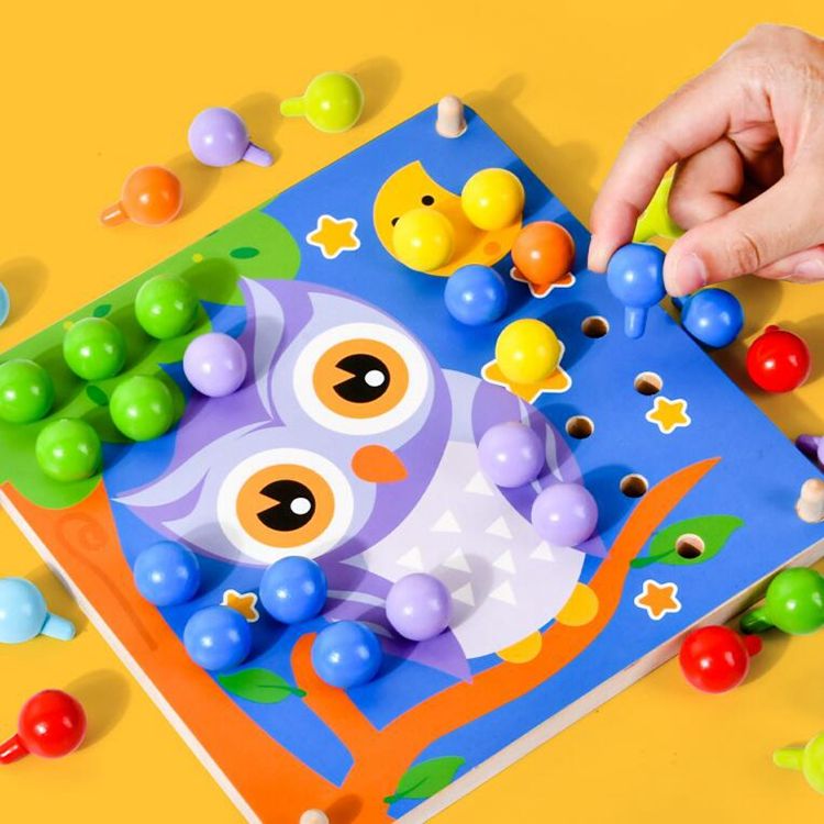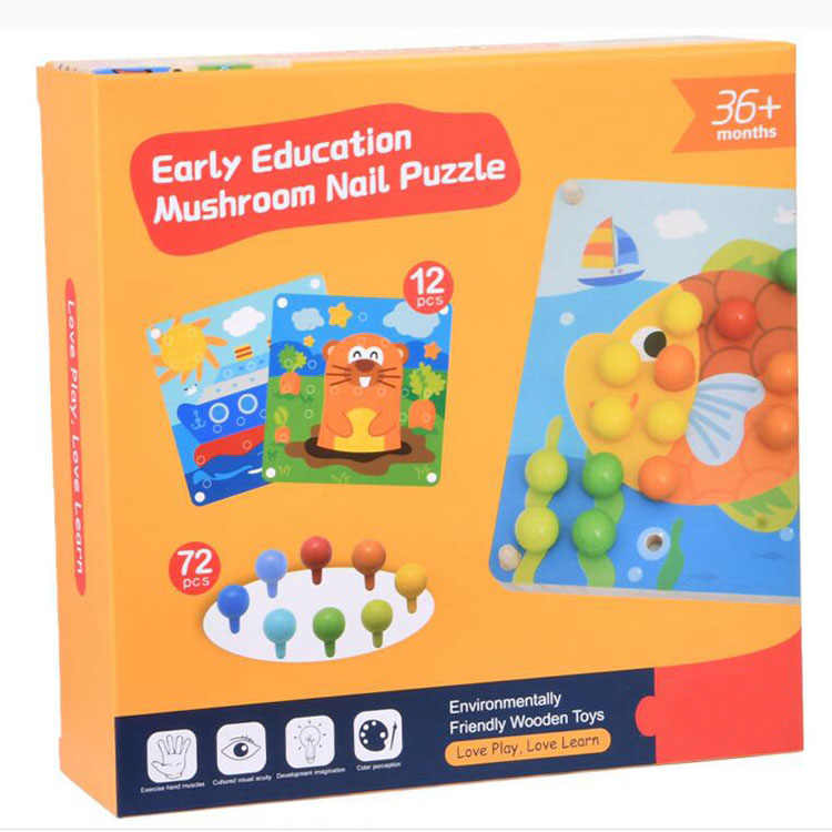 2 en 1 color juego de madera cordón juguete botón uñas rompecabezas