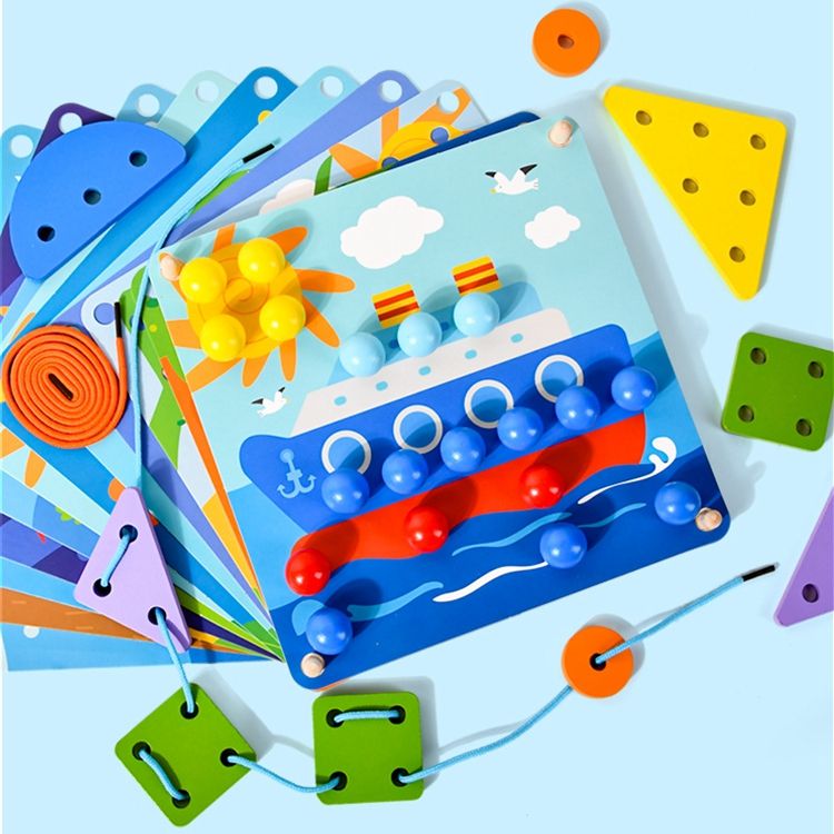 Nombre del producto:2 en 1 color juego de madera cordón juguete botón uñas rompecabezas