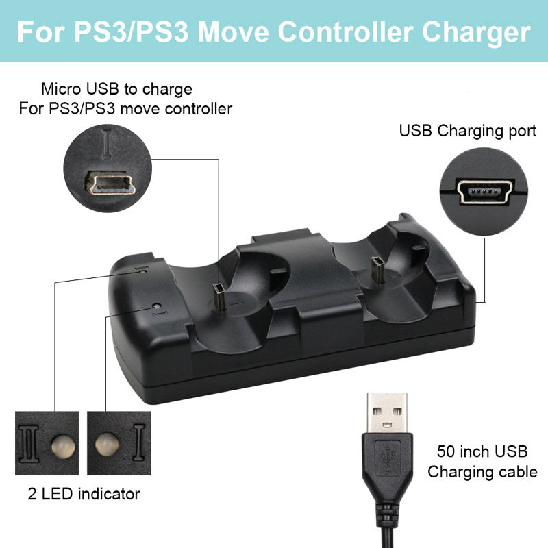 Base de Carga Doble 2 en 1 para PS3 MOVE para Controlador de Playstation 3, Joystick, Gamepad, Cargador Dual, ENVÍO RÁPIDO