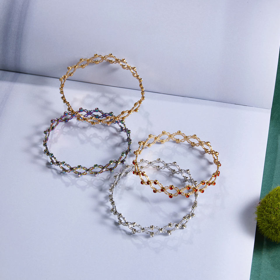 Pulsera de Anillo Retráctil Mágica 2 en 1, Anillo Plegable Creativo y Elástico, Pulseras de Cristal con Pedrería, Regalo de Joyería para Mujer
