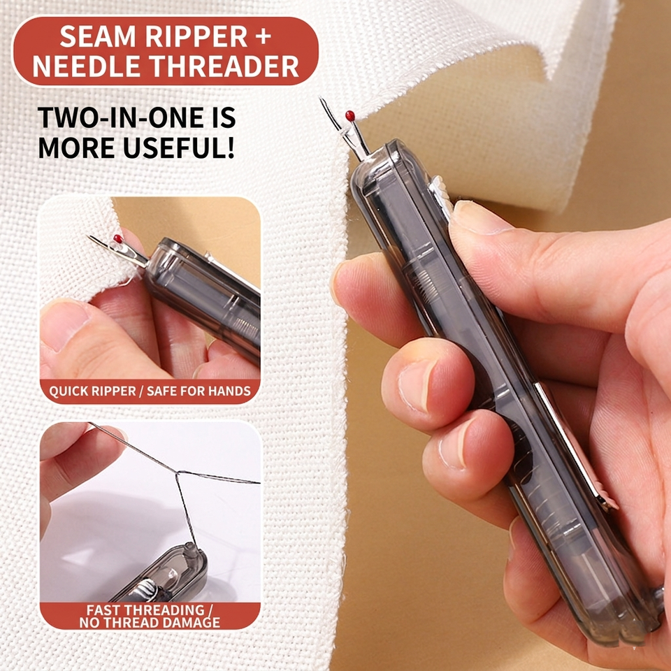 Enhebrador de agujas 2 en 1 y descosedor de costuras