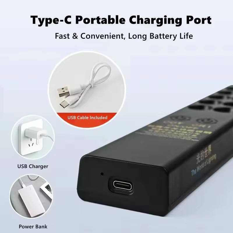 Varita de Luz LED 2 en 1 Portátil con Temperatura de Color Ajustable, Recargable, 98 CRI, Medidor de Comparación para Fotografía, Diseño de Iluminación de Video
