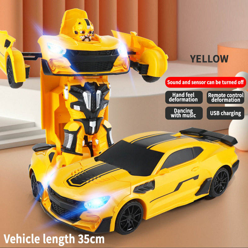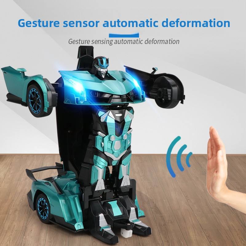 Coche Teledirigido 2 en 1 con Música, Luces, Sensor de Gestos, Robot de Deformación con un Solo Botón, Escala 1:12, Regalo para Niños