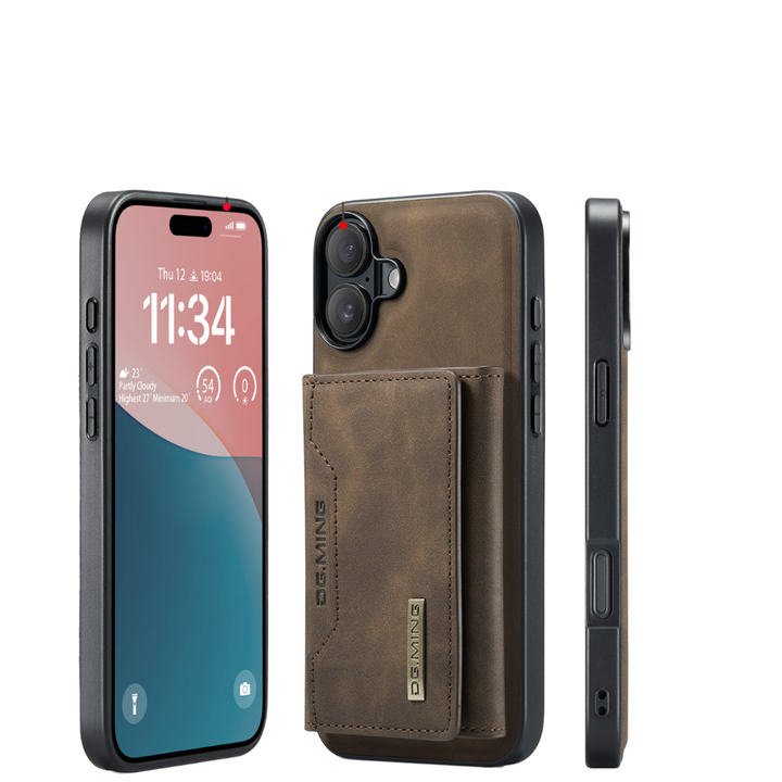 Característica 4:2-en-1 ranuras para tarjetas desmontable retro Cartera de cuero caso