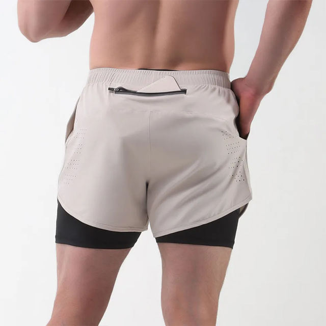 2 en 1 Towel Loop Single Layer Peso ligero Entrenamiento Deportes Jogger Pantalones cortos para correr con bolsillos con cremallera Hombres Muscle Gym Shorts playa
