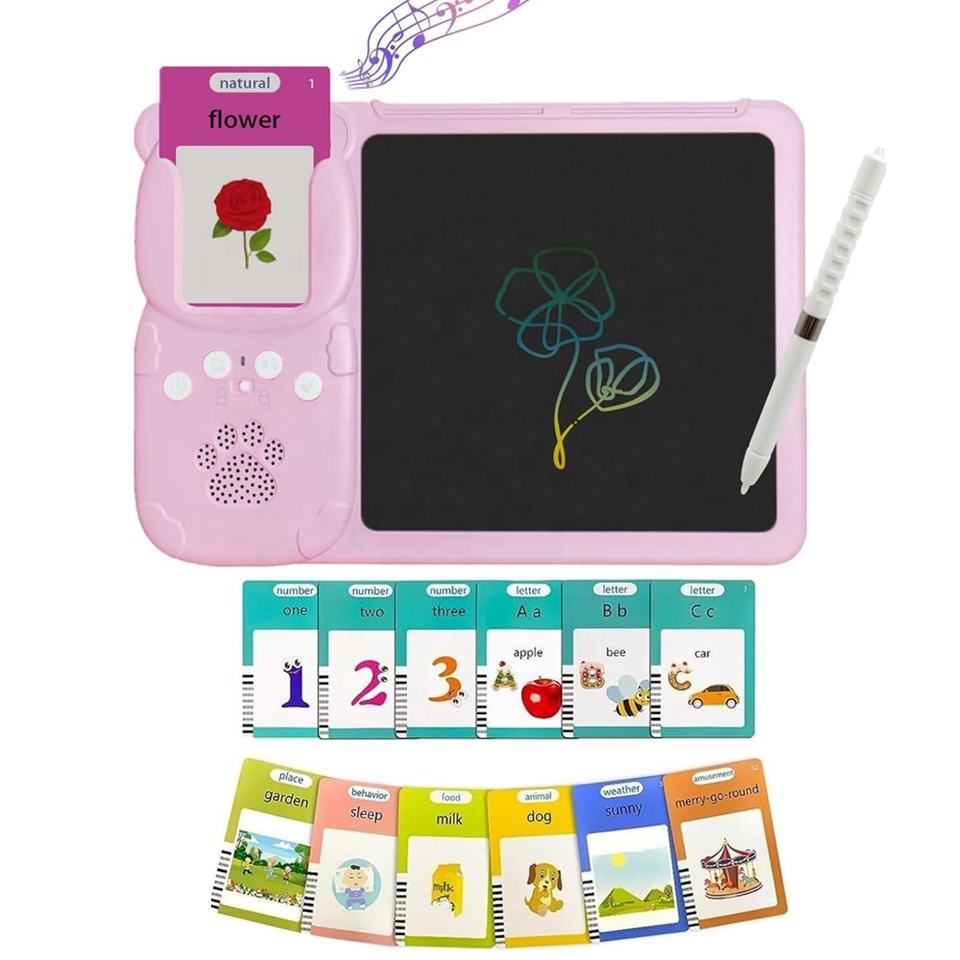 Nombre del producto: máquina de tarjetas flash parlante:Niños hablando tarjetas de memoria flash LCD escritura tableta juguete Montessori lector de tarjetas