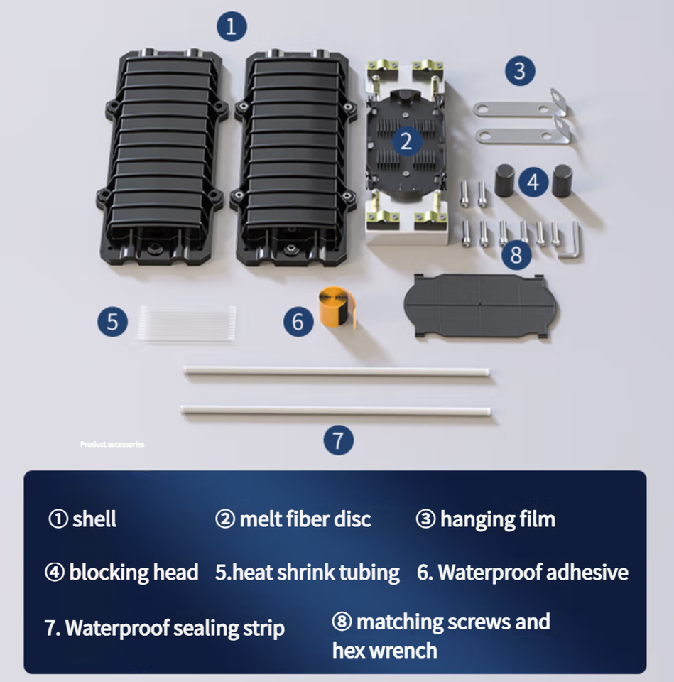 Caja de empalme de cable óptico para exteriores 2 en 2 salidas Caja de terminales de fibra óptica empalmada por fusión tipo D pequeña de 12/24 núcleos