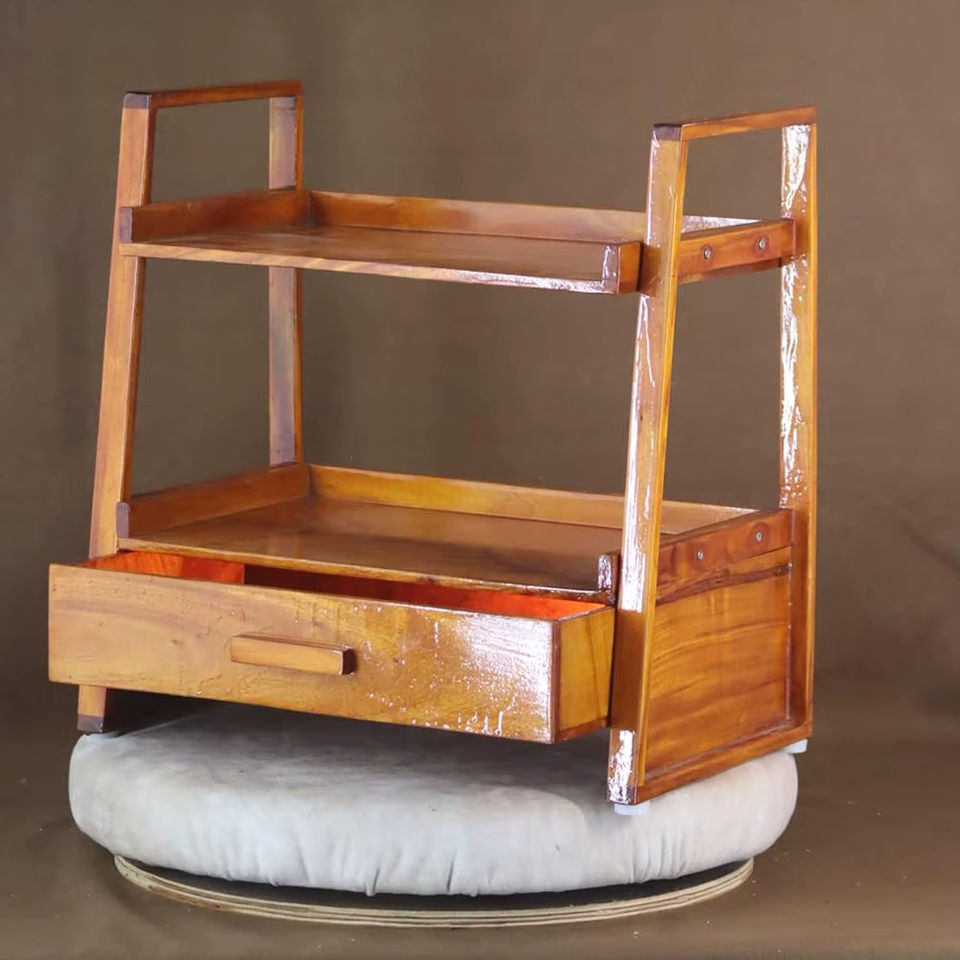 Estante de cocina rectangular de madera de 2 niveles con bandeja para especias, frascos, productos de repostería y artículos esenciales
