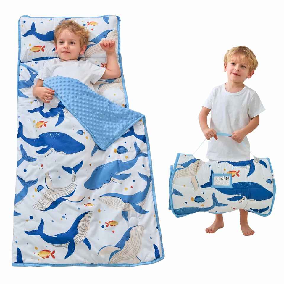 Saco de Dormir para Niños Pequeños de 20*50 Pulgadas con Almohada y Manta Extraíbles, Tapete para Dormir Enrollable para Guardería