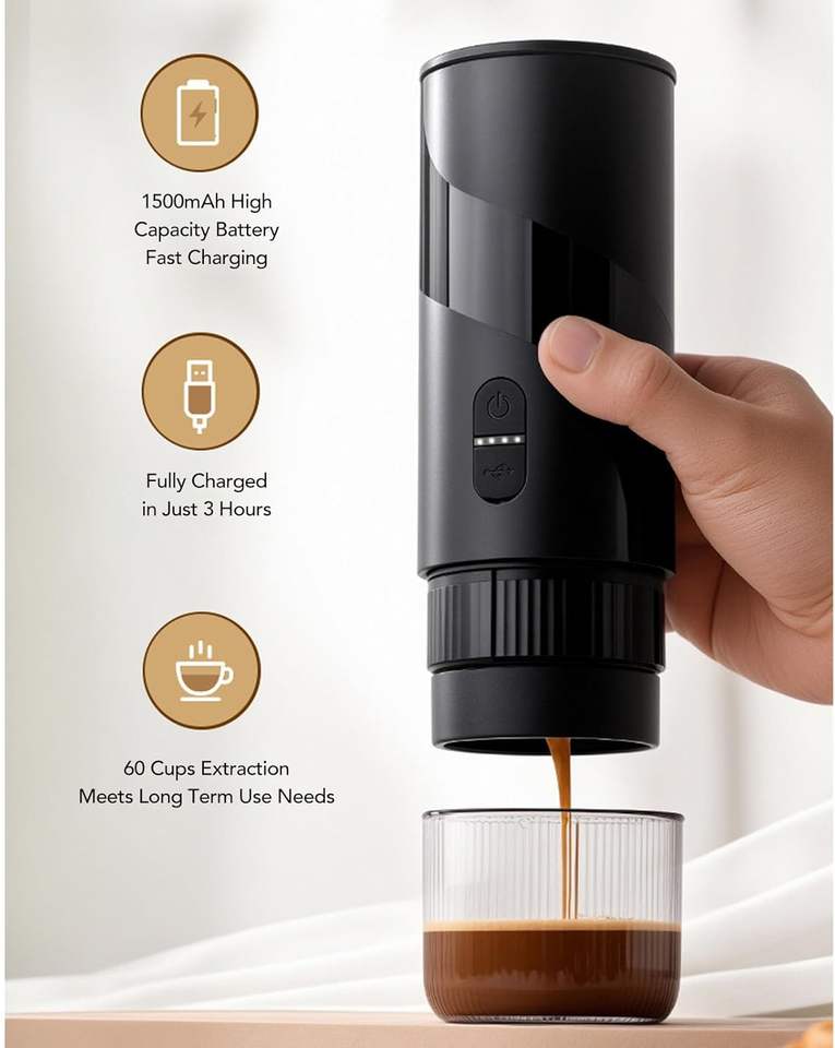 Cápsula Autocalentable de 20 Barras / Café en Polvo, Cafetera Eléctrica USB-C, Cafetera Portátil para Viajes en Auto y Camping