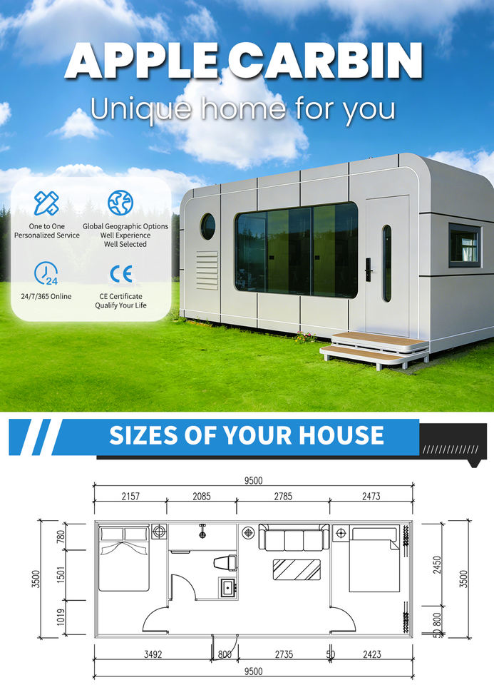 Cabaña Prefabricada de 20 Pies, Casa Modular, Hotel, Oficina, Cabaña Tipo Apple, Cabana de Manzana Prefabricada