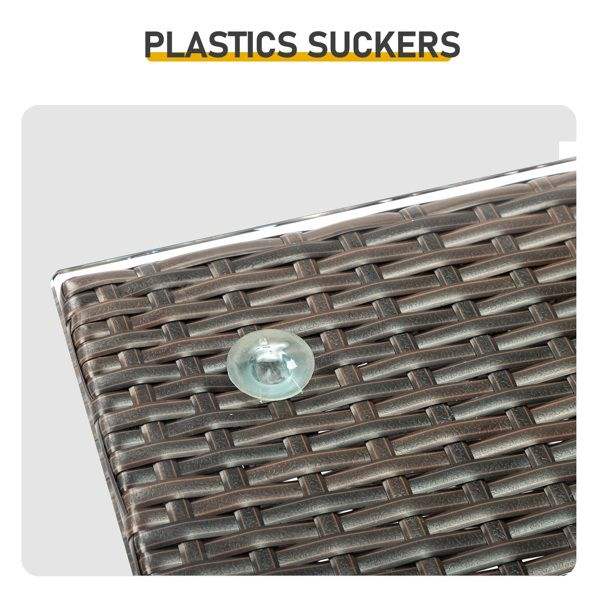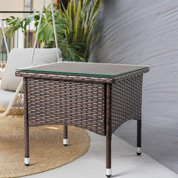 Mesa de Patio para Exteriores de 20 Pulgadas, Resistente a la Intemperie, con Extremos Cuadrados de Mimbre y Tablero de Vidrio para Terraza o Jardín