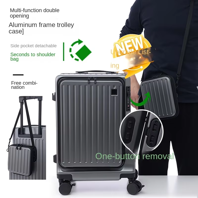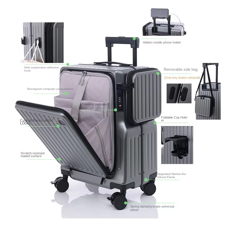 Maleta con marco de aluminio de 20 pulgadas Equipaje de mano Hardside Apertura frontal doble Bloqueo TSA Silencioso Ruedas 360 Equipaje de facturación