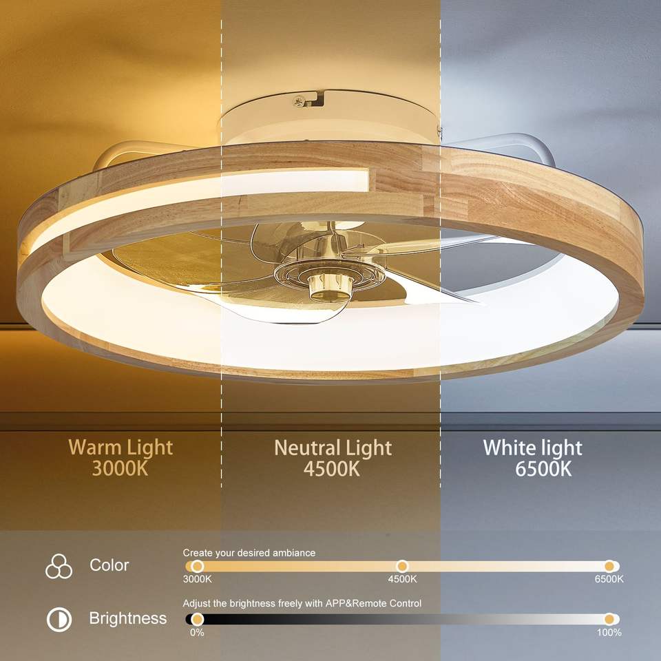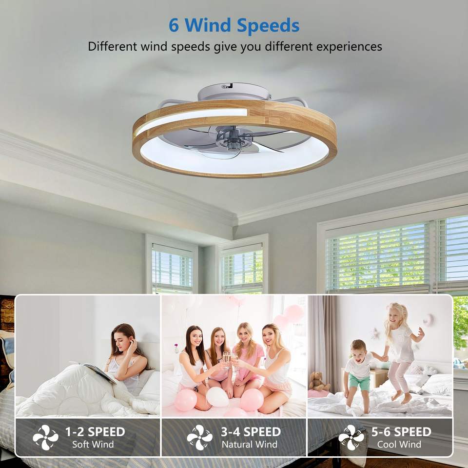 Ventilador de Techo LED de 20 Pulgadas de Perfil Bajo con Luces, 6000K 3000K, 6 Velocidades, Control Remoto, Iluminación LED de 3000 6000K