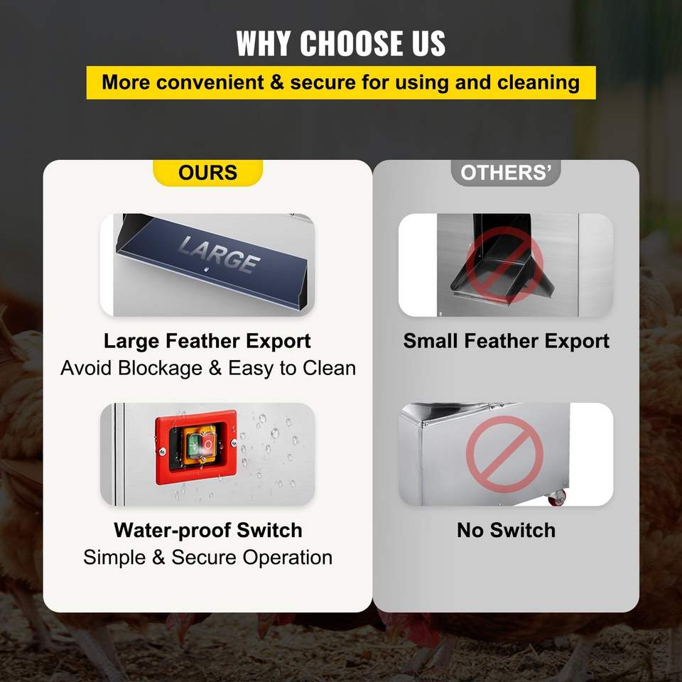 Desplumadora de pollo de acero inoxidable de 20 pulgadas, resistente, 1500W, 275R/min, diámetro del barril, eliminador de plumas, procesamiento de carne de aves de corral