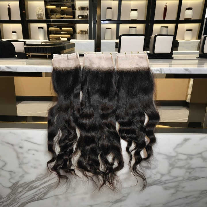 Extensiones de cabello humano crudo ondulado de 20 pulgadas, cierre 6/6, cabello crudo indio, hermoso cabello del sur de la India con cordones indios transparentes
