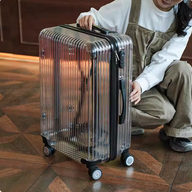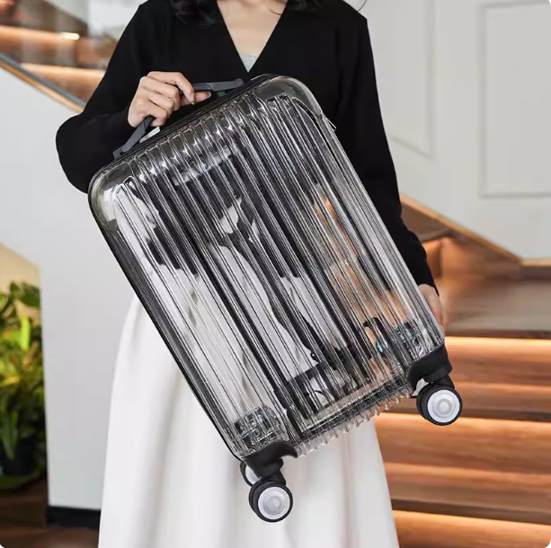 Maleta de mano unisex transparente para PC de 20 pulgadas, maleta con ruedas, equipaje con ruedas giratorias, Maleta transparente con ruedas