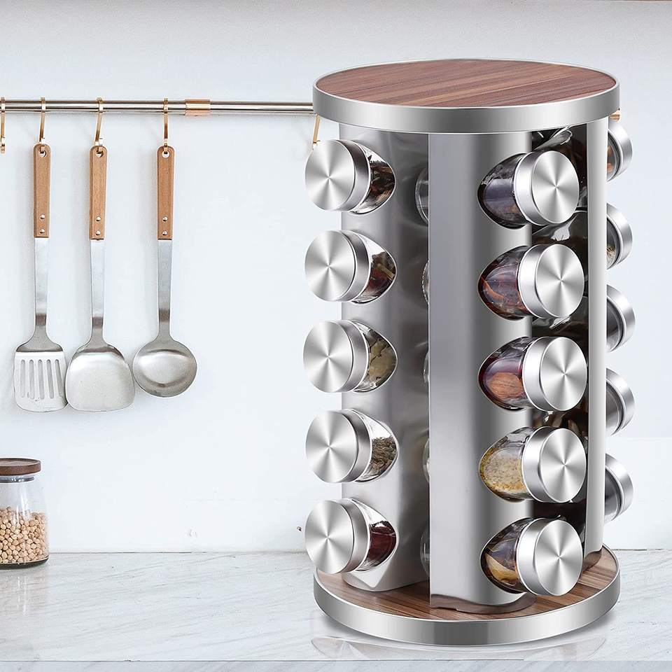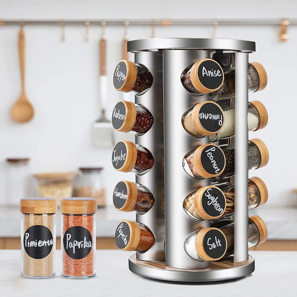 Organizador de especias giratorio vertical de 20 frascos, estante de vidrio para cocina, estante giratorio para especias, soporte para hierbas