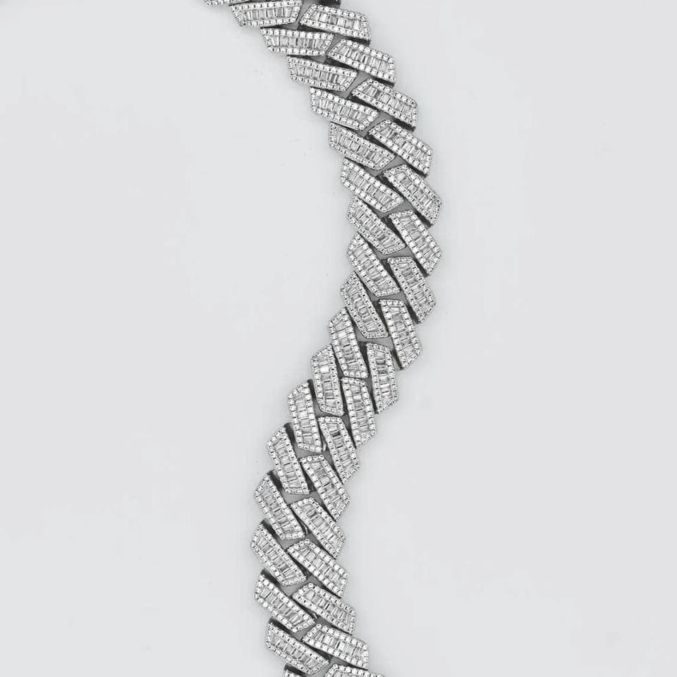Collar de Cadena Cubana Miami Bling Personalizado de 20 mm, Chapado en Oro de Lujo, Plata Sólida 925 con Moissanita de Corte Baguette, para Hombre, Boda