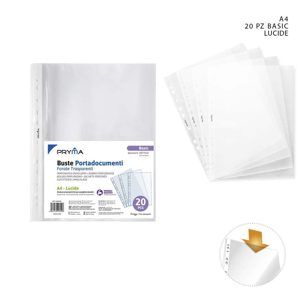 Paquete de 20 clips de papelería para suministros de oficina con bolsillos multiagujero A4