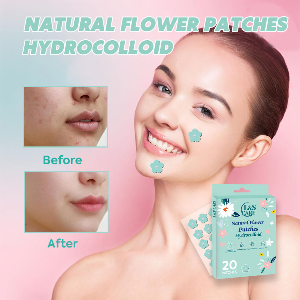 20 Parches para el Acné con Forma de Flor Colorida, Nueva Forma, Parche Anti-Acné, 12 mm con Perla