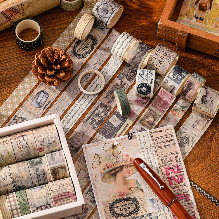 20 rollos/caja Retro años europeos monólogo serie Washi Tape Set manual diario DIY pegatinas decorativas cinta adhesiva