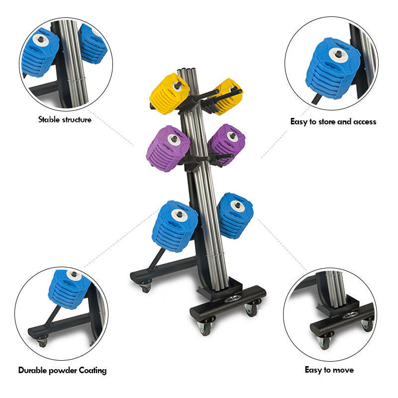 20 Sets de Soportes para Equipos de Gimnasio con Ruedas, Solución de Almacenamiento Móvil Compacta, Soportes para Barras y Sentadillas