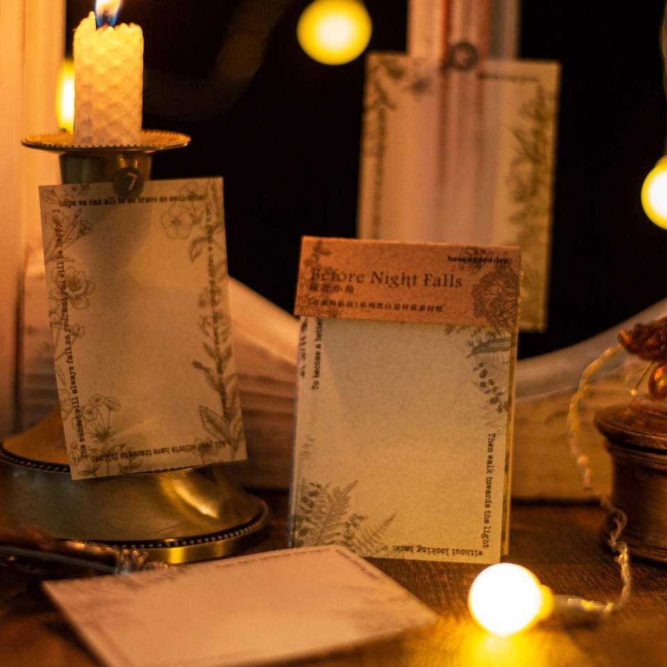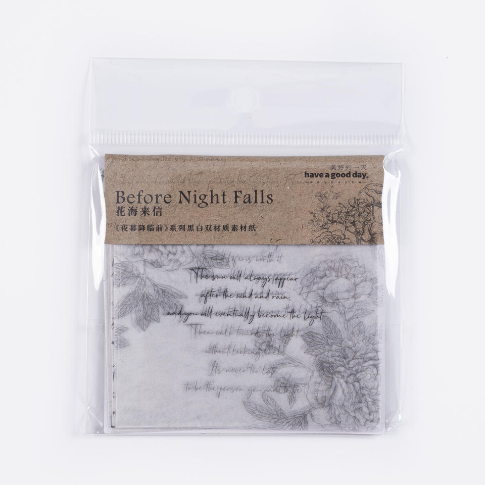 Papel de Material Retro de la serie de caídas nocturnas, Material decorativo para diario, negro y blanco, 20 hojas