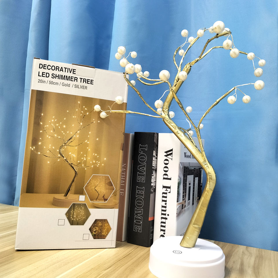 Lámpara LED de Mesa con Forma de Bonsái de 20 Pulgadas, 36 Perlas, 8 Funciones, Decoración de Árbol DIY, Funciona con USB y Batería, para Dormitorio, Escritorio, Navidad