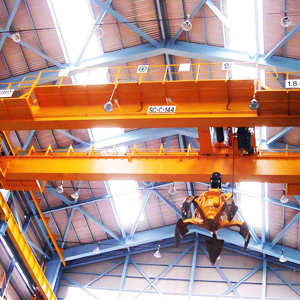 Grúa Aérea de 20 Toneladas con Cucharón de Agarre Tipo Piel de Naranja para Manipulación de Diversos Tipos de Chatarra